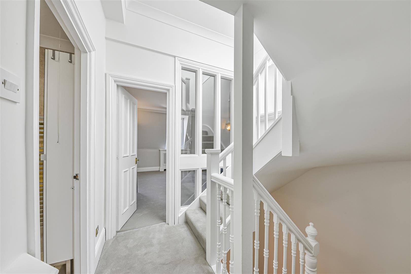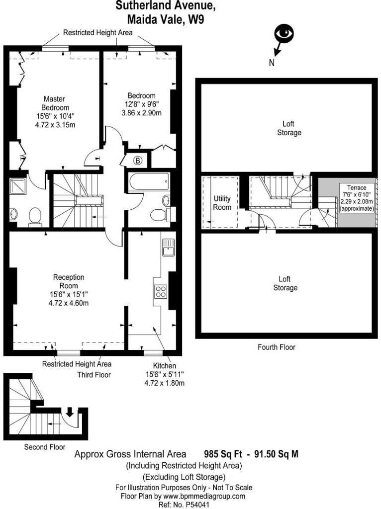 A very bright two bedroom duplex situated on the third floor, with a loft floor above, located on Sutherland Avenue close to Warwick Avenue. The flat measuring 985sq ft (excluding the loft storage) comprises an entrance on the second floor with stairs up to the reception and semi open plan kitchen. To the back of the building there are two double bedrooms, overlooking the gardens, the master with ensuite shower room. and further bathroom. A standout feature of the home is the vaulted glass atrium that floods the stairwell with natural light and leads to a utility room and a delightful private terrace . Further benefits include access to beautiful well maintained communal gardens, excellent storage throughout and enviable location being close to the picturesque canals of Little Venice and the cafes and bars, as well as Warwick Avenue tube.
